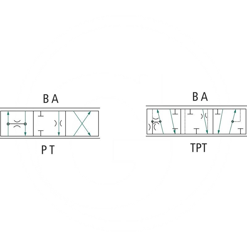- Description: 4/3-Wege gedrosselt, Neutralstellung A->T, PC -> B