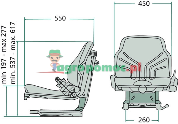 ● Horizontal adjustment 210 mm, on rails ● Seat cushion width 450 mm