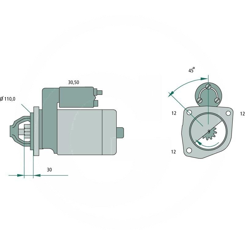 - Pinion (teeth): 9