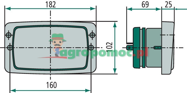 12V4WK / T4W - Version: with position light, with metal sheet reflector and cap, supporting frame made of black plastic, installation depth 76 mm, light emission: 148 x 84 mm.E1 44439,IP5K4K