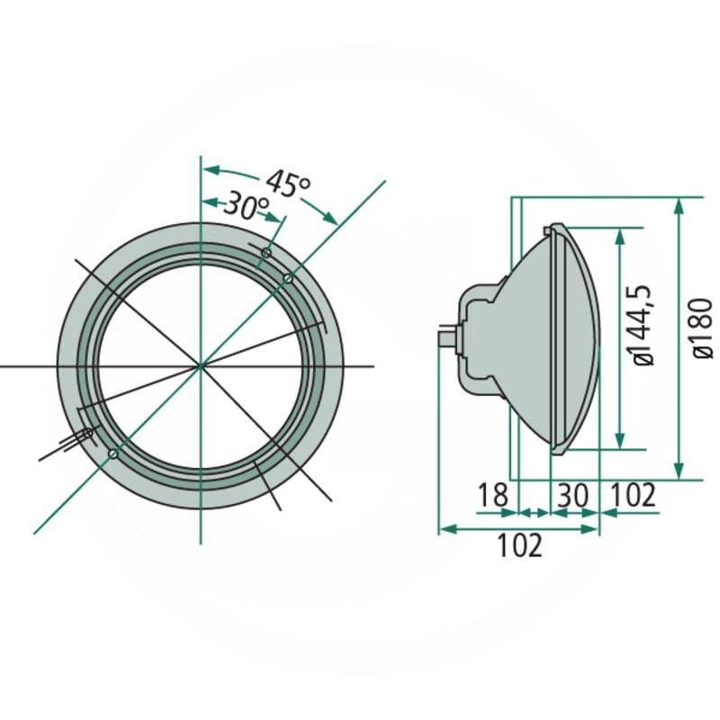 or 12V45/40W-Halogen / R2 - Version: Full and dipped headlightLight aperture: Ø 140 mm E1 14468