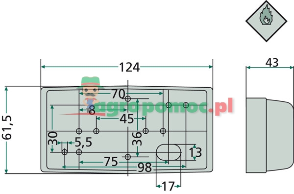 - Version: For horizontal or vertical mounting, with reflector. Suitable for regulation on carriage of dangerous goods by road (GGVS/ADR),10 holes Ø 5,5 mm for optional fixationE4 23152, E4 468, E4 469