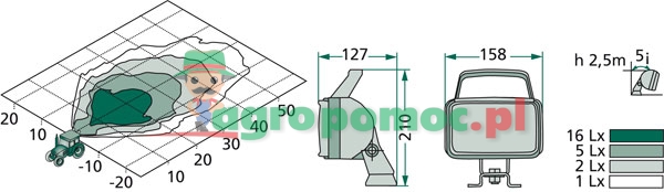 - Version: With handlebarTerrain illumination, extremely far reachingRecommended tilt angle: 5°- 20°With double reflector, black case made of fibreglass reinforced plastic with protuberant edge to protect the diffusing panelWith sleeve and 250 mm long silicone connection cableFixing bracket for four-point fixingBracket height: 22 mmScrew spacing: 27 mm or 67 mmLight aperture: 136 x 88 mm