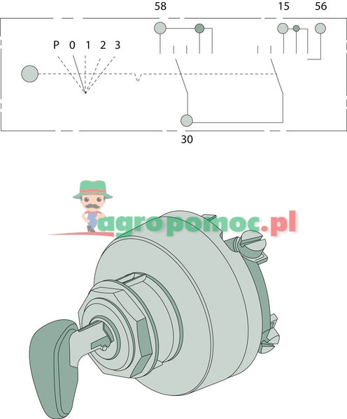 Switch position: P = parking light, 0 = off, 1 = daily use,