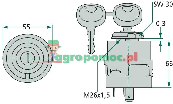 switching positions: 0 - ignition - pre-heat - start