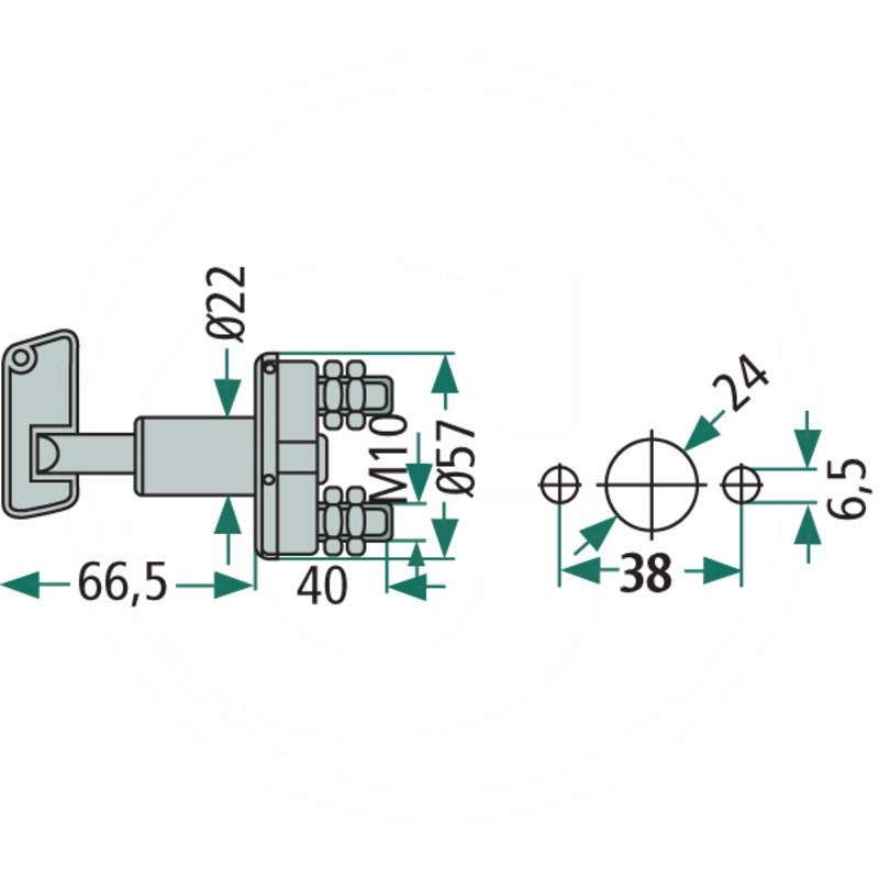 Power rating at steady state max. 50A at max. 80°C ambient temperature and a cable connected with ring lug of at least 35 mm²turning actuationcloser - Weight: 164 g