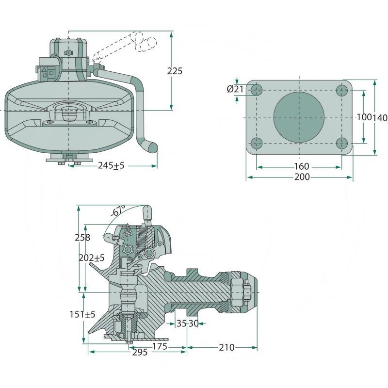 - Hole pattern (mm): 160 x 100